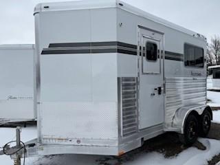Description: 12’ + 3’ Wedge 15’ x 6'10" x 8’ Tall 2 Horse Straight Load BP - Two 3500# Torsion 102" Axles W/ Electric Brakes, Five 6-Ply Radial Trailer Tires, 15" Aluminum Wheels, 2 5/16" Coupler, Pad Type Jack, Tongue Length 62", Wedge Nose, Polished Cast Corner Cap, Pre-Painted White on Exterior Smooth Aluminum, D/R Door PP White W/ Window @ CS Wedge, Rubber on Tack Room Floor, Carpet Bulkhead Wall Between Post, Walk-Thru Door at Head Each Horse w/ Drop Down Feed Door with Bars in Windows @ Bulkhead Wall, 24" x 48” Hip Window Each Horse, Full Width 60" Easy Lift Rear Ramp w/ Dutch Doors w/ Windows, Permanent Straight Bulkhead Wall, Smooth Ribbed Aluminum Floor, Floor Mats Full Length Horse Compartment, Insulated & Double Walled Full Length Horse Compartment, Rubber Lined Walls in Horse Compartment, Rubber Bulkhead Wall, 84” Quiet Ride Divider W/ Wither & Swinging Head Shield, Two-Way Roof Vent Per Horse, 2 Trailer Ties Per Horse - Inside & Outside, Feed Bag Per Horse, Butt Bar & Breast Bar per Horse, 3 L.E.D. Dome Lights, Saddle Rack 1 Per Horse on Removable Post @ SS D/R, 10 Bridle Hooks, 1 Brush Tray, 1 Blanket Bar, High Turn Signals, L.E.D. Awning Light, L.E.D. Lighting, Custom Graphics